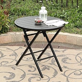 Phi Villa Dia 28 Outdoor Patio Portable Round Folding Bistro Dining Table With Aluminum Table Top And Metal Footing Frame