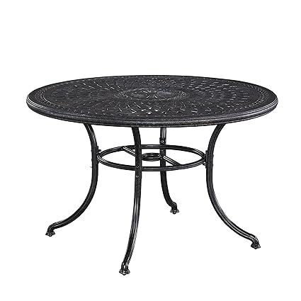 Home Styles Round 51 Inch Outdoor Dining Table With Black Marble Tiles Design Metal Base