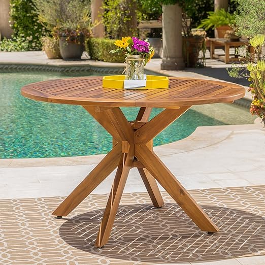 Stanford Outdoor Acacia Wood Dining Table Round With Teak Finish
