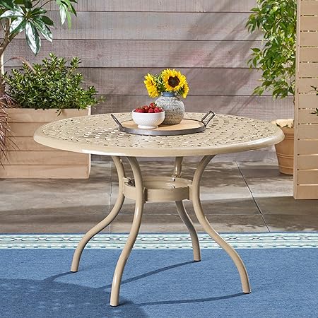Christopher Knight Home 305653 Tsa Outdoor Cast Aluminum Round Dining Table Sand