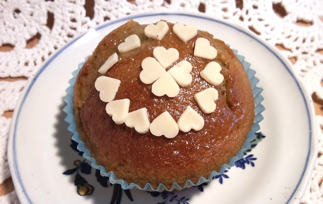 Fare raffreddare, velare la superficie dei muffin con poco miele fluido e decorare con cuoricini, codette e con quello che la vostra fantasia suggerisce!!