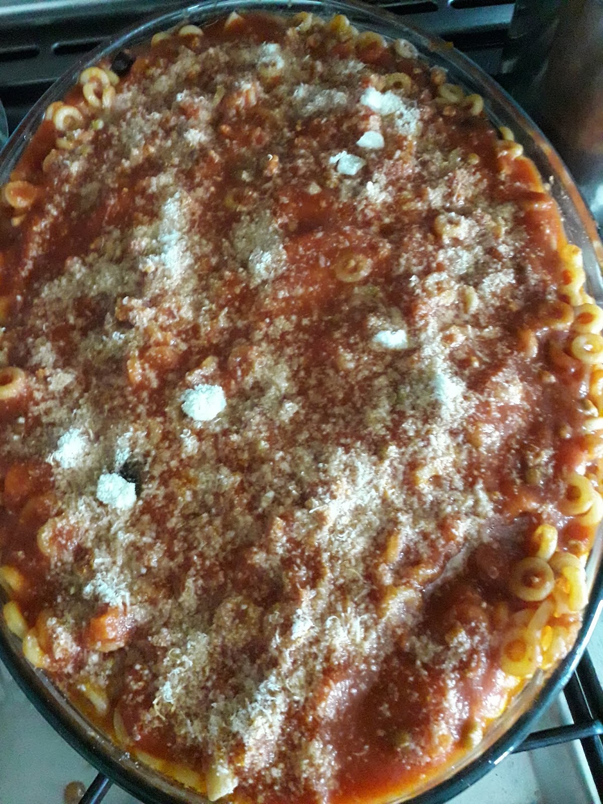 con altro sugo,ricopriamo con la restante pasta,aggiungiamo altro sugo e formaggio e mettiamo