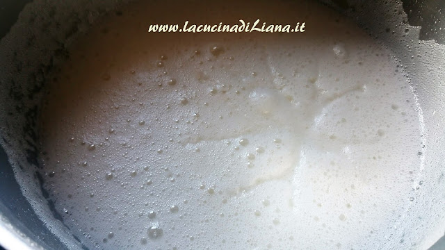 Mettere un pentolino con gli albumi a bagnomaria, e sempre mescolando riscaldare finchè gli albumi raggiungono i 45 gradi di temperatura.