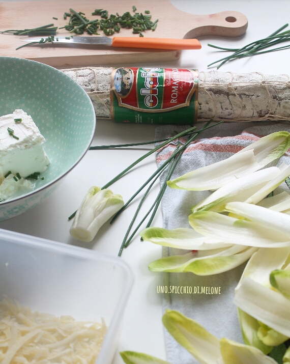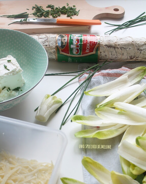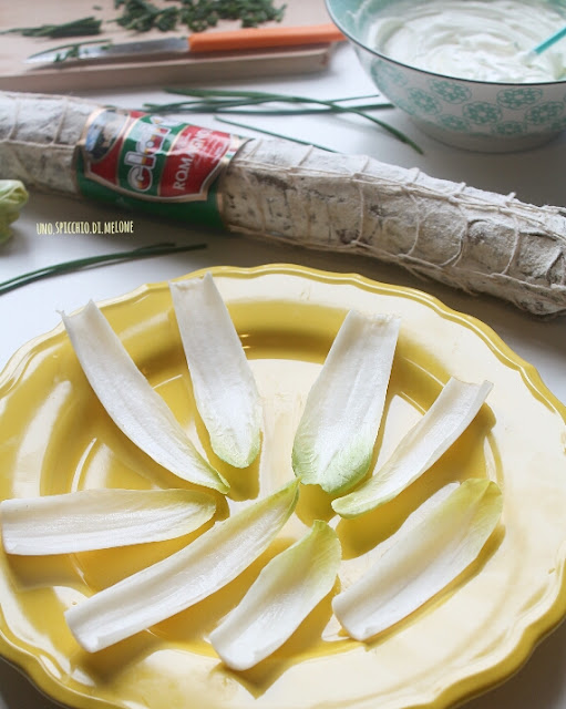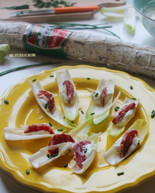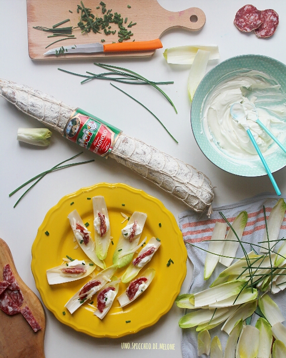 Il titolo di questa ricetta →ANTIPASTO FRESCO e SFIZIOSO con INDIVIA BELGA, una MOUSSE di ROBIOLA e SALAME ROMAGNOLO CLAI ←già dice tutto! :-)