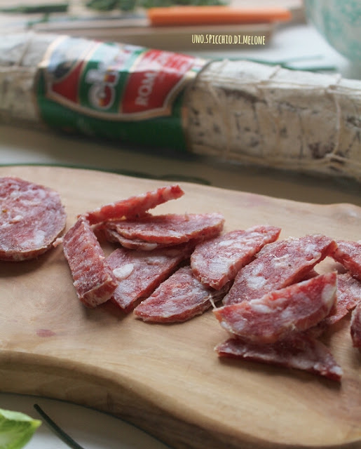 Dividete in due le profumatissime fette di SALAME ROMAGNOLO CLAI…attenzione, come sempre, alcune fette andranno mangiate durante la preparazione! Ahah!