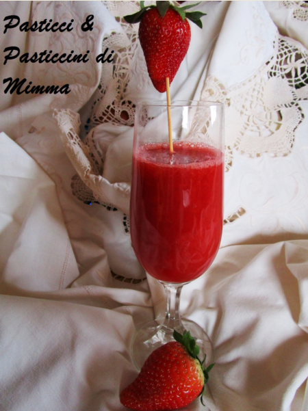 Questo aperitivo è bello anche da vedere , rosso, profumatissimo perchè a base di fragole, peperoni rossi e zenzero.