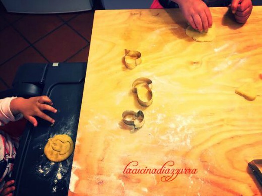 Siccome la Lely, la bimba più piccola di mia sorella, non era voluta andare al mare con sua sorella e i nonni ma coccolarsi la sua mamma, due giorni fa le disse ”Senti la zia Dudu se posso andare a casa sua a giocare con Elio?”chiaramente dissi di sì, ma, vista la sua passione per la crostata alle more, pensai di fargliela prima che arrivasse tenendo due palline da parte da far lavorare ai piccoletti. Quando Elio si è svegliato ci siamo messe all’opera: la Lely dava le direttive e lui, a modo suo, agiva ahahahaha