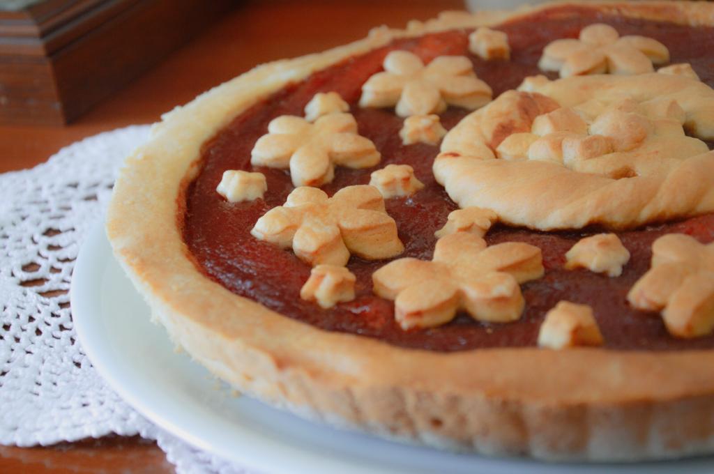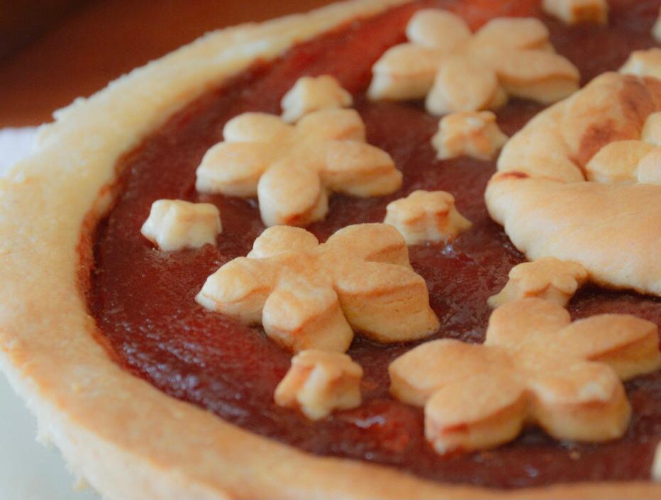 Roll out the remaining pasta frolla and with a cookie cutter make the decorations to add on top of our crostata.