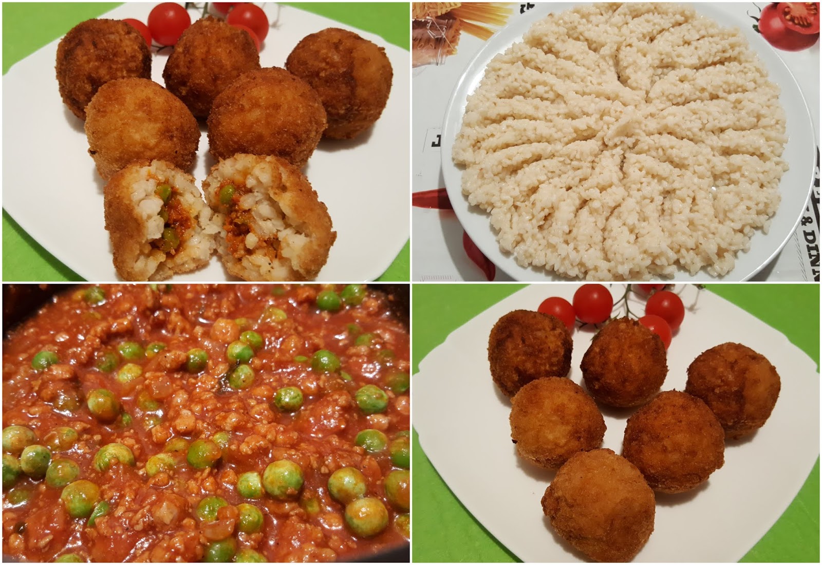 - Racchiudere il ragù con i piselli dentro nel modo che non fuoriesce nella cottura e formare delle palline fino al esaurimento del riso, mettendoli man mano su un piatto.