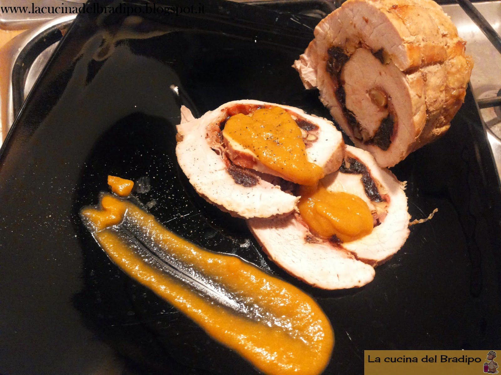 Ecco un arrosto un pò diverso dal solito, ripieno di speck, prugne e noci. Il ripieno sprigiona un gusto molto particolare che ben si accompagna con la carne del maiale.
