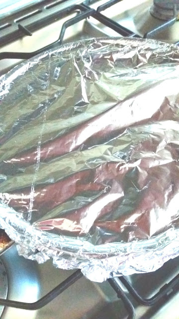 coprire ben stretto tutta la padella con carta stagnola!!Lasciar cuocere a fiamma media x 1 ora,