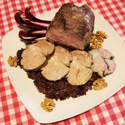 Il vitello, tenero e delicato, si sposa benissimo con il gusto deciso ma non coprente del radicchio tardivo di Treviso IGP, ed ho voluto aggiungere le noci per variare le consistenze. Se avete già letto altre mie ricette sapete che mi piace giocare a nascondere elementi croccanti nelle salse morbide! Apparte questo però la ricetta è davvero facile e basilare, impossibile da sbagliare. Se credete che fare un arrosto diverso dal classico al vino sia complicato, vi ricrederete eccome…