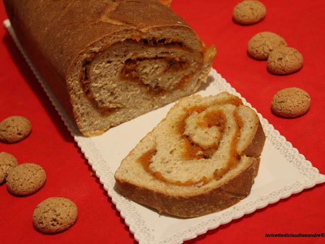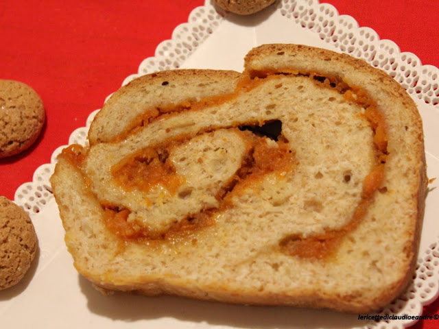 Arrotolato di pan brioche integrale con la confettura di zucca e amaretti