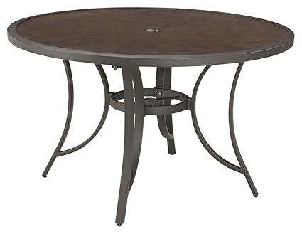 Ashley Furniture Signature Design Carmadelia Round Outdoor Dining Table With Umbrella Option Seats 4 Tan Brown