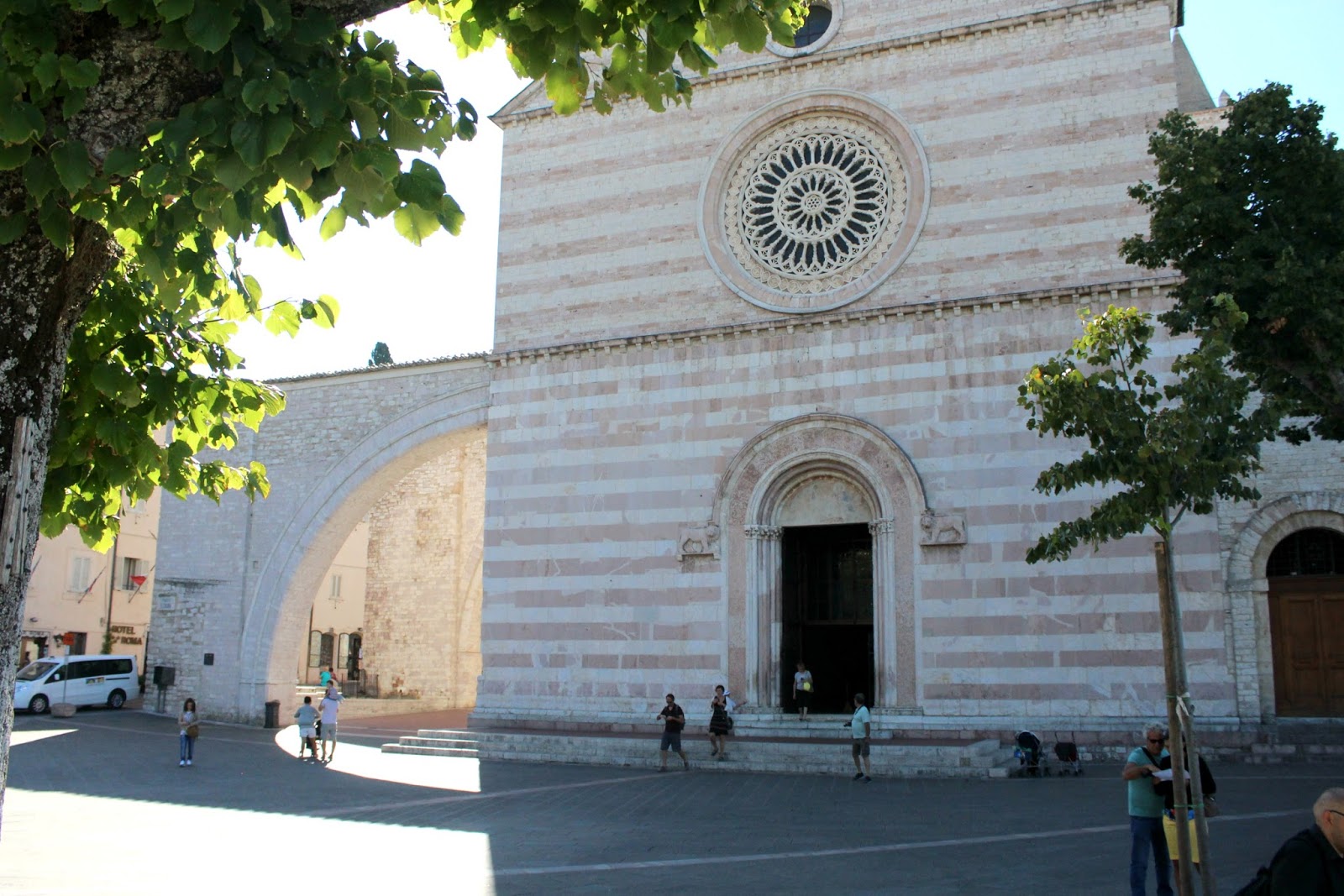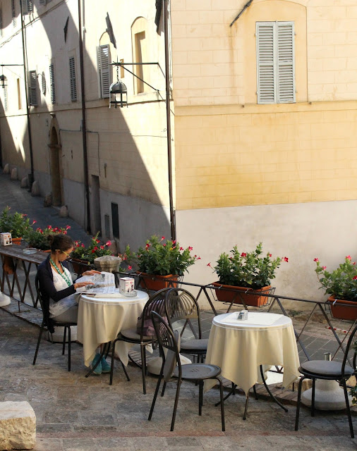 Quindi non vi sto a raccontare della Basilica di S. Francesco, della chiesa di Santa Chiara, di quella di San Rufino. Oppure della Rocca Maggiore, perfetta per un picnic primaverile o per solo godersi il paesaggio in religioso silenzio. Le emozioni, quelle sono importanti. Emozione e sentimento che accomuna una Federica che ha vissuto il borgo ogni giorno negli ultimi tempi, un americano venuto in pellegrinaggio, un tedesco, francese, ungherese, messicano… etc etc. Vi voglio parlare di quel brivido che corre per tutta la schiena quando ti sporgi dalle terrazze e ammiri tutta la natura che ti circonda. Degli occhi che, credetemi, non riescono mai a stare fermi perché ci sarà sempre un piccolo particolare che coglierà la vostra attenzione. Pace e tranquillità del primo mattino mescolata alla marea di turisti che come lucertole al sole, si riversano per le stradine soleggiate a mezzogiorno; con passo stanco ma con gli occhi che ancora sorridono per ciò che hanno visto poco prima. Turisti e comuni cittadini che si mescolano nei vari bar del centro storico, ognuno con la propria tazzina di espresso e chiacchiere a non finire.