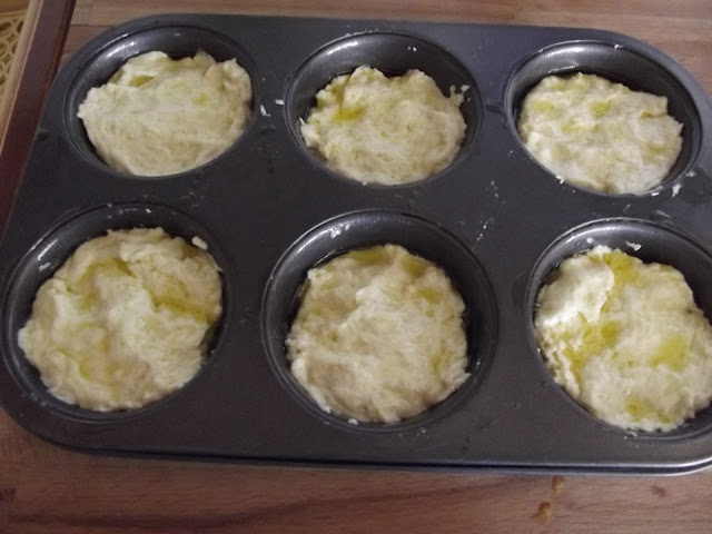 Lavate e sbucciate le patate quindi fatele bollire per una ventina di minuti poi schiacciatele bene e mettetele tiepide insieme alle farine, all’olio, al sale e allo zucchero. Sciogliete a parte il lievito in un po’ di acqua di cottura delle patate intiepidita, quindi aggiungete al composto e se serve aggiungete ancora altra acqua di cottura. Impastate fino ad ottenere un composto morbido e lasciate lievitare fino al raddoppio del composto per almeno un paio di ore. Quindi mettete un po’ d’impasto nelle formine di silicone o in quelle per i muffins (ma precedentemente oleate) e spennelatele con un po’ di olio evo e infornate a 200 gradi circa per 20/25 minuti.