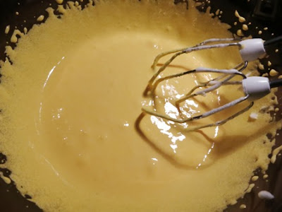 Come appare dalla foto ho montato prima gli albumi e successivamente le uova con lo zucchero così non ho dovuto lavare le fruste…