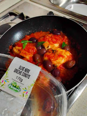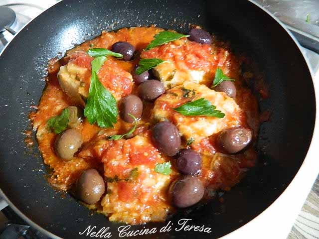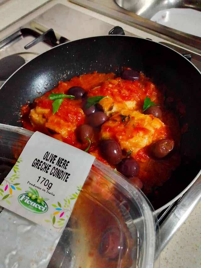 schiacciadoli con la forchetta e facciamo cuocere per circa 15 minuti rigirandoli almeno una volta. A cottura ultimata del baccalà aggiungere le Olive Nere Greche Condite e il prezzemolo,
