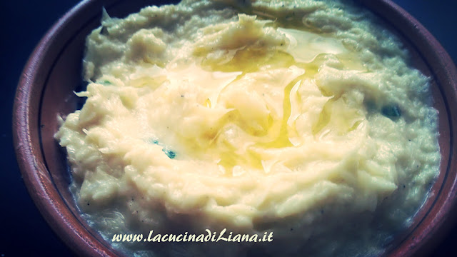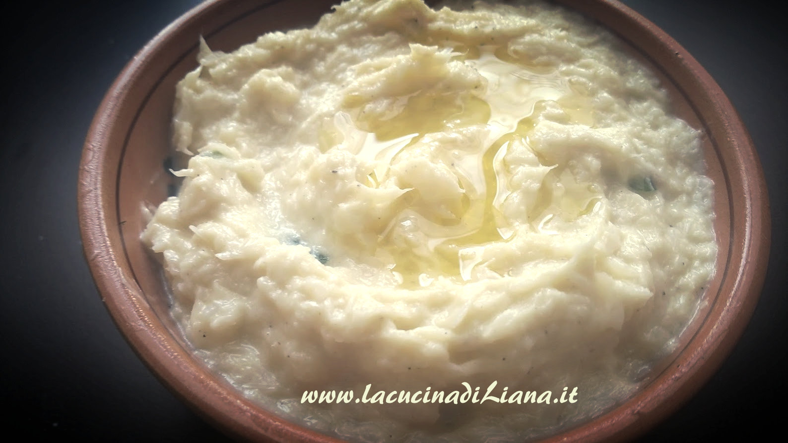 La ricetta è veneta, ma comunque si prepara così in diverse regioni del Nord Italia. Io ho usato il baccalà sottosale, che quindi necessita di un paio di giorni di ammollo, ma si può usare anche lo stoccafisso già ammollato, e ho preferito l’olio extravergine di oliva, anche se in molti preferiscono l’olio di semi. Ho insaporito con aglio e prezzemolo, ma anche questi sono solo opzionali.
