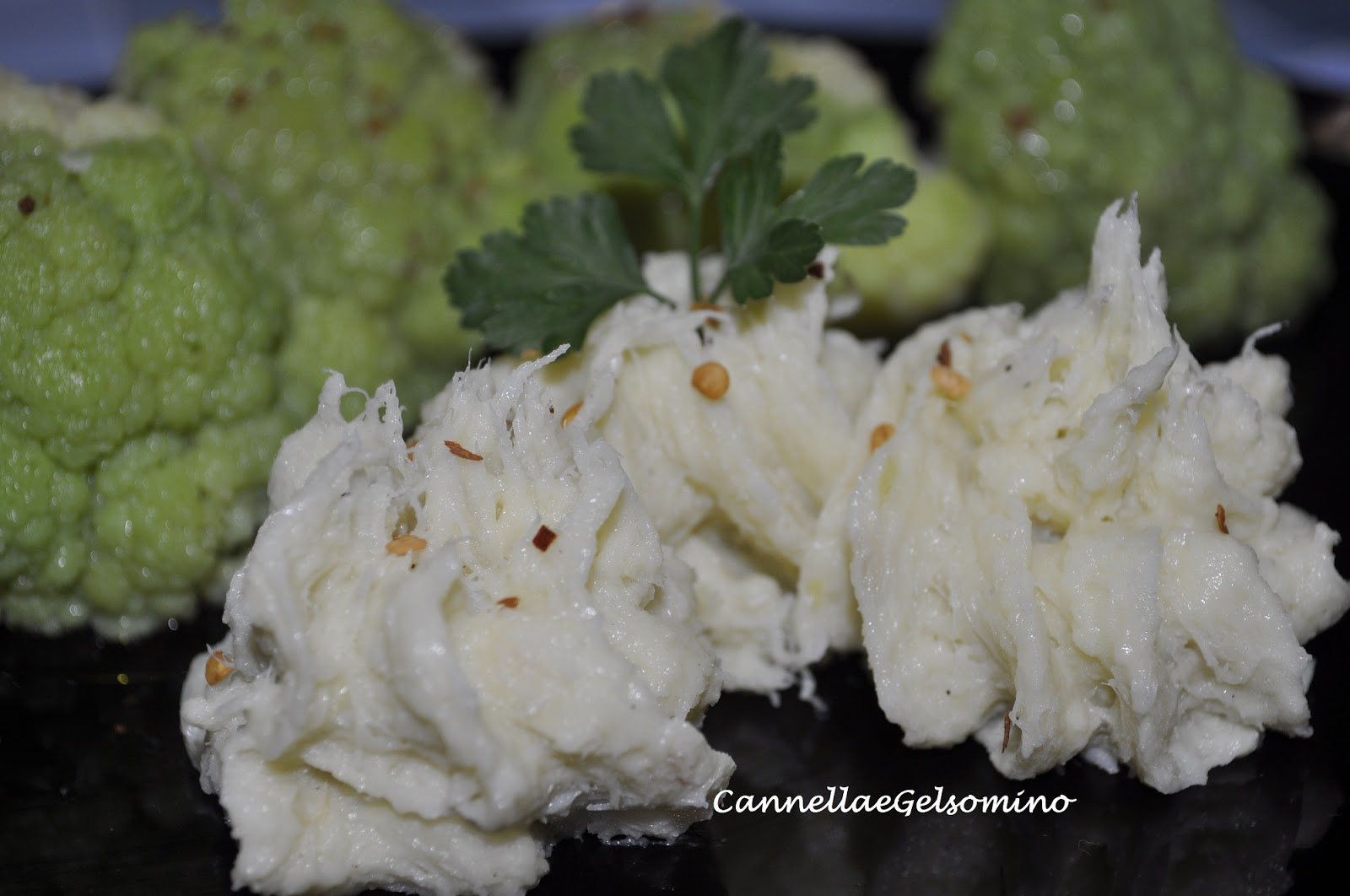 In abbinamento ho lessato del cavolfiore verde che condisco solo con olio extravergine e peperoncino. Rimarrete stupiti dalla delicatezza di quest’accoppiata!