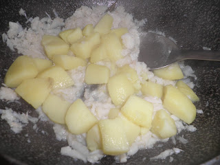 Aggiungete una grossa patata ( 200/250 g circa) tagliata a cubetti.