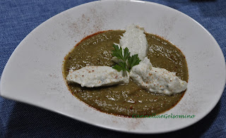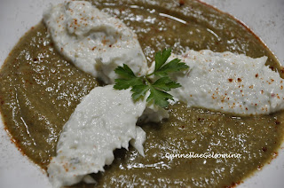 Aggiungete quindi la ricotta continuando a mescolare fino ad ottenere una bella crema. Se vi piace potete aggiungere del prezzemolo tritato finissimo. Intanto preparate la crema di ceci frullando i ceci lessati con un po’ della loro acqua e un filo di olio extravergine d’oliva.