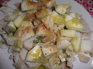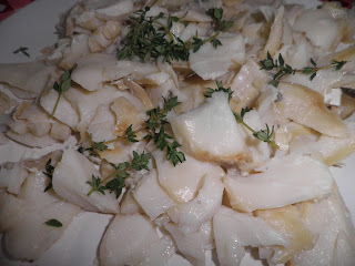 Togliete le lische, riducetelo in piccoli pezzi e conditelo con foglioline di timo, mezzo spicchio d’aglio, peperoncino rosso e abbondante olio extravergine d’oliva.