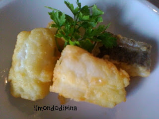 Tagliate a pezzi i filetti di baccalà e dopo averli lavati e tamponati con carta assorbente da cucina, infarinateli e friggeteli in olio evo bollente. Scolateli e poggiateli su carta assorbente da cucina.