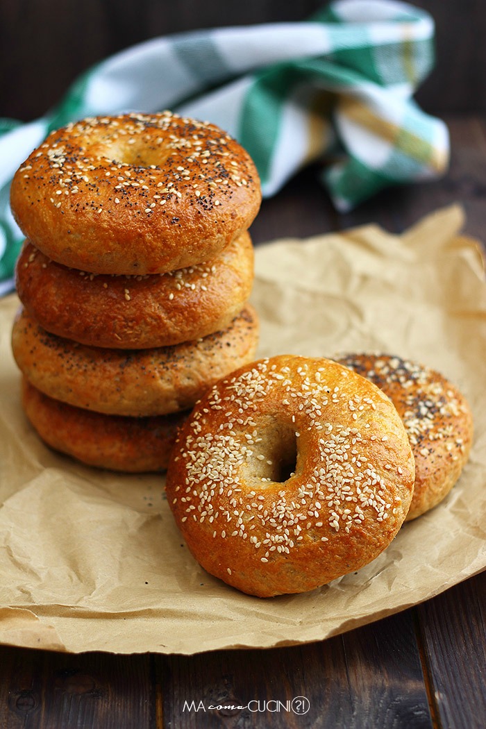 Fortunatamente le ragazze di Re-cake per la “sfida” di febbraio hanno proposto i bagels, dei panini a forma di doughnuts (non posso fare a meno di pensare ai dolci!!) ricoperti di semi.
