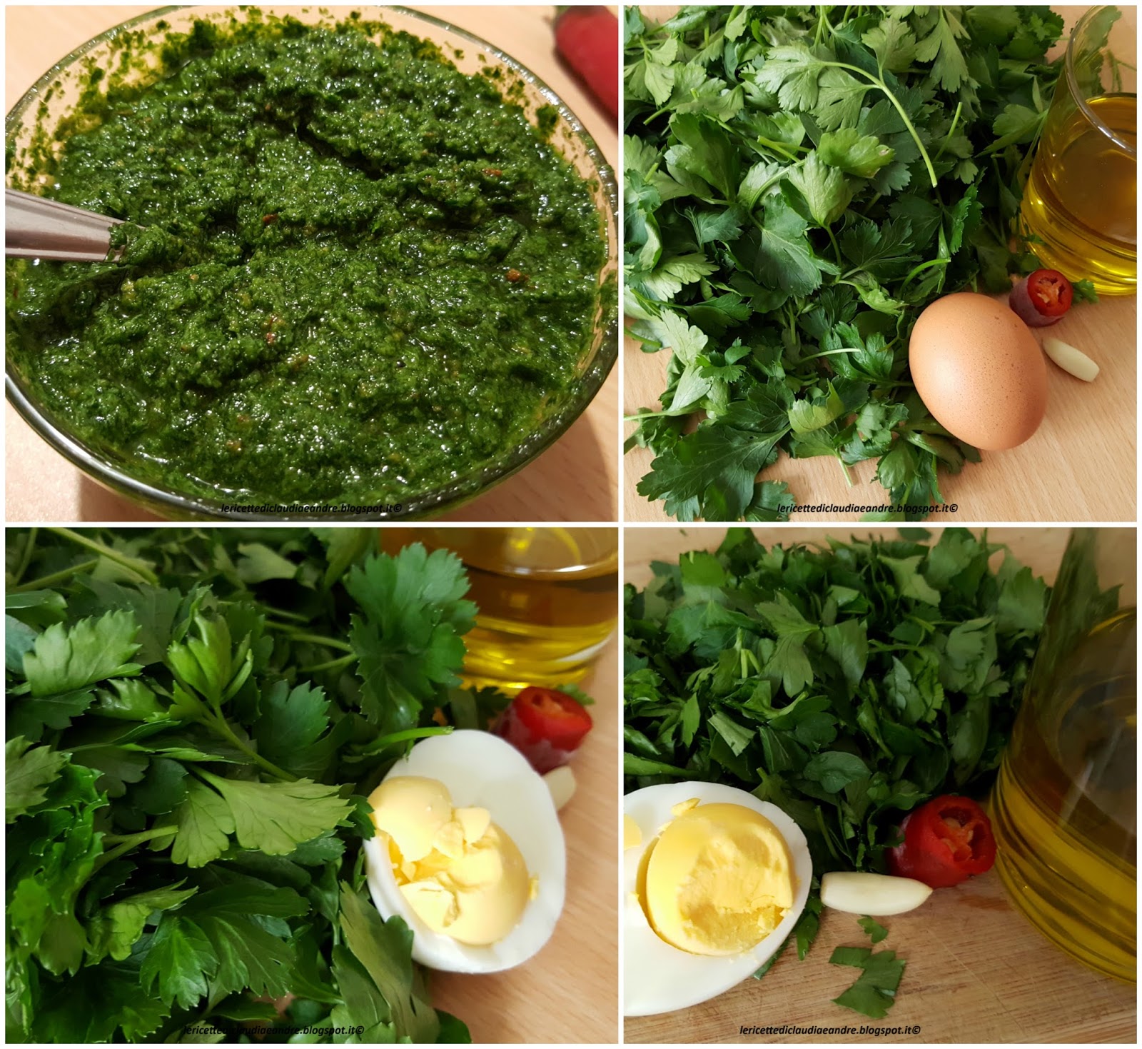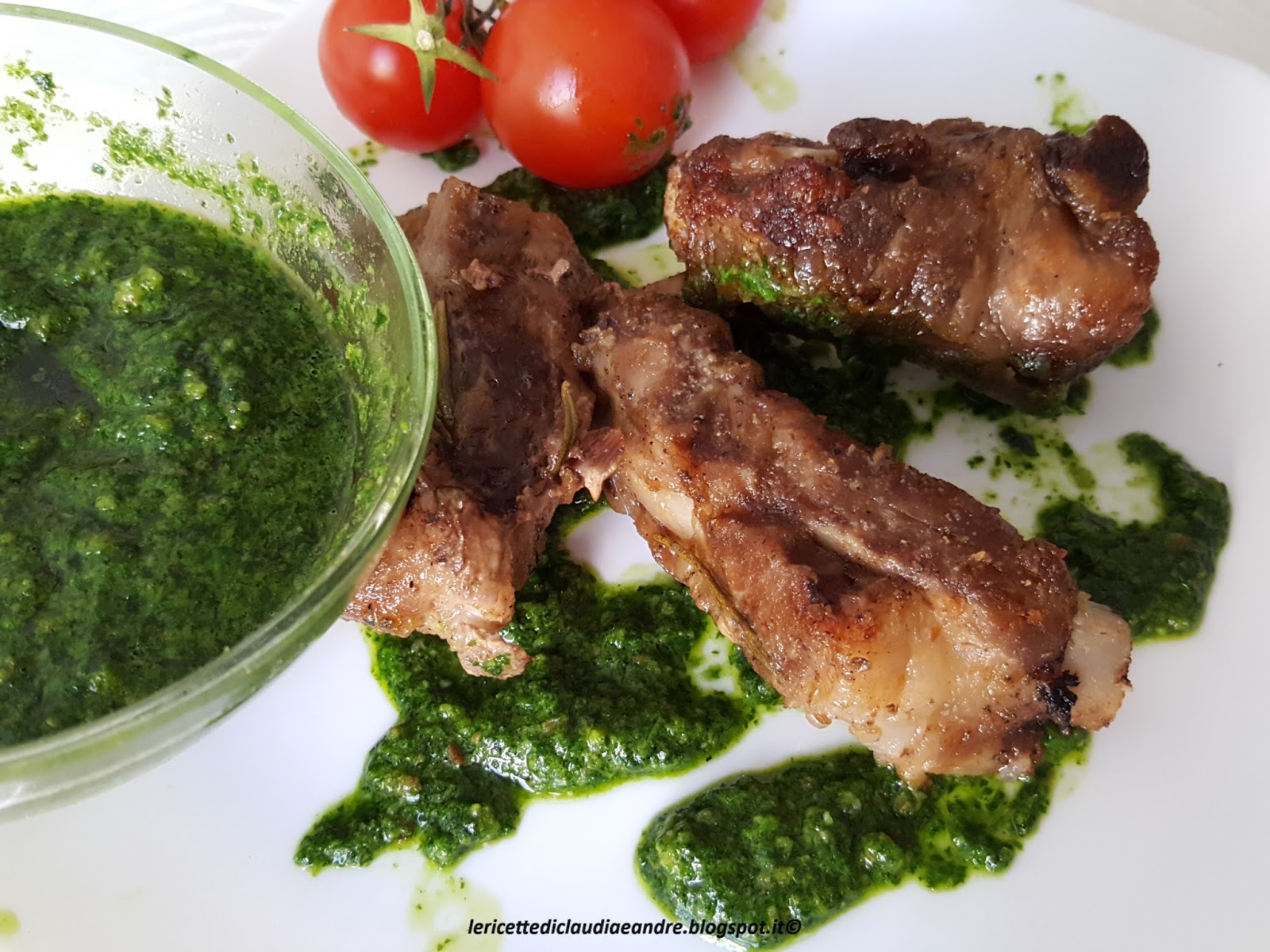 L’ho chiamato bagnetto verde a modo mio perché non ho messo le acciughe perché non tutti in famiglia li gradiscono e ci volevano 1-2 acciughe per chi volesse provarlo con, al posto dei 50 gr di  mollica di pane ho messo del pan grattato e solo 1 cucchiaio di aceto che prevedeva 50 gr. Posso dire che è venuto ugualmente molto buono e tra l’altro, abbiamo accompagnato insieme delle gustose costine cotte al forno con le patate e senza aggiunta di altri grassi.