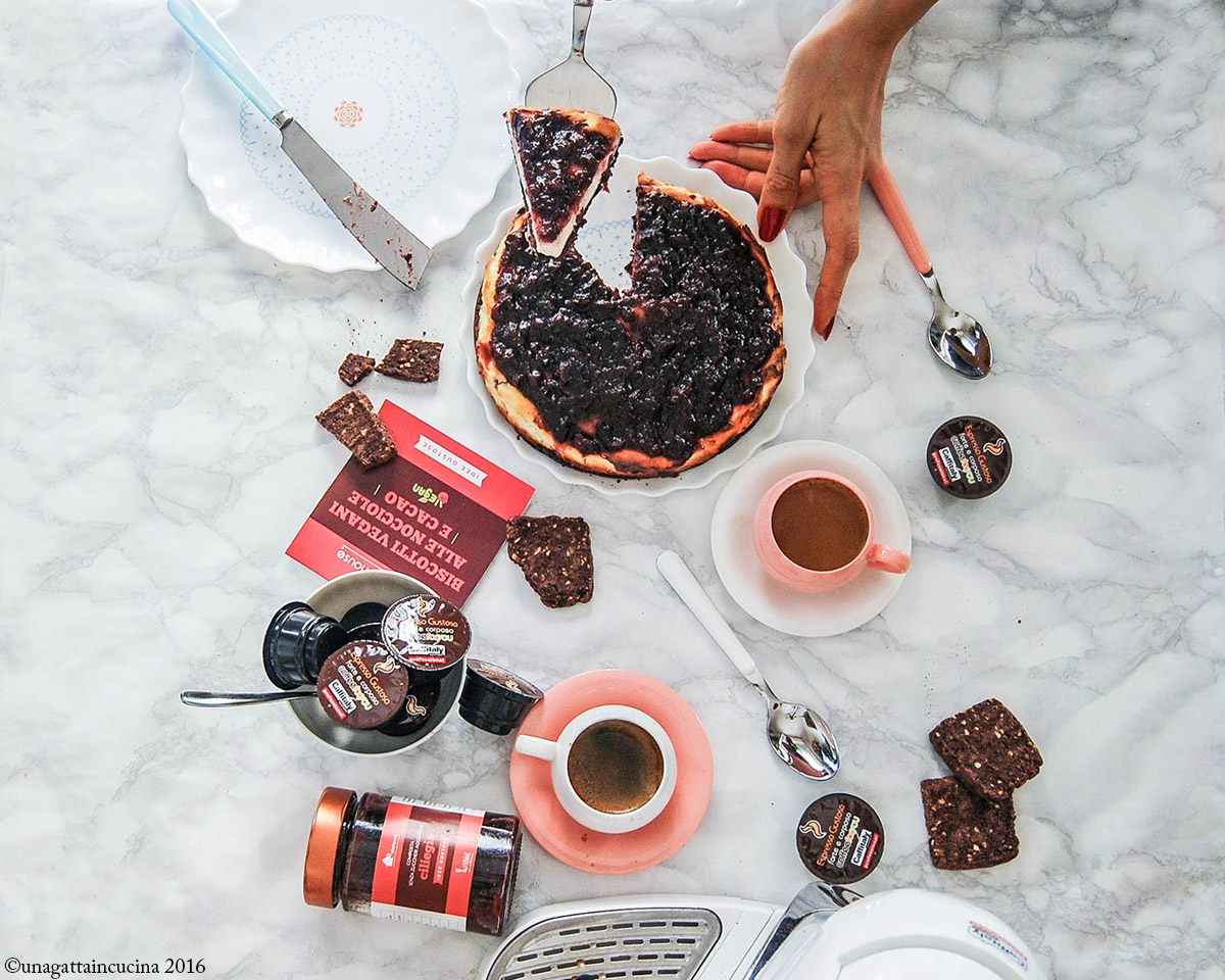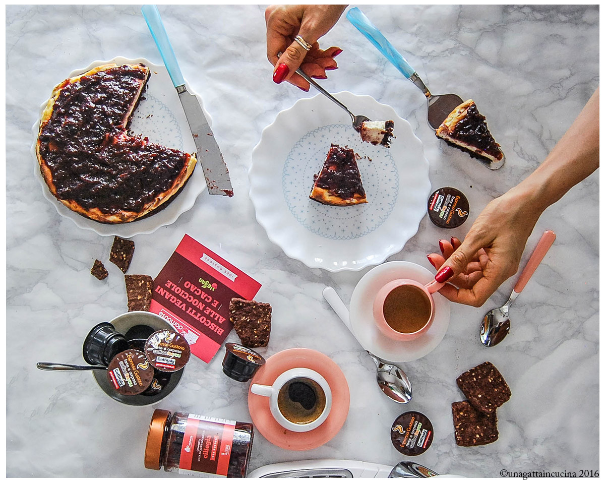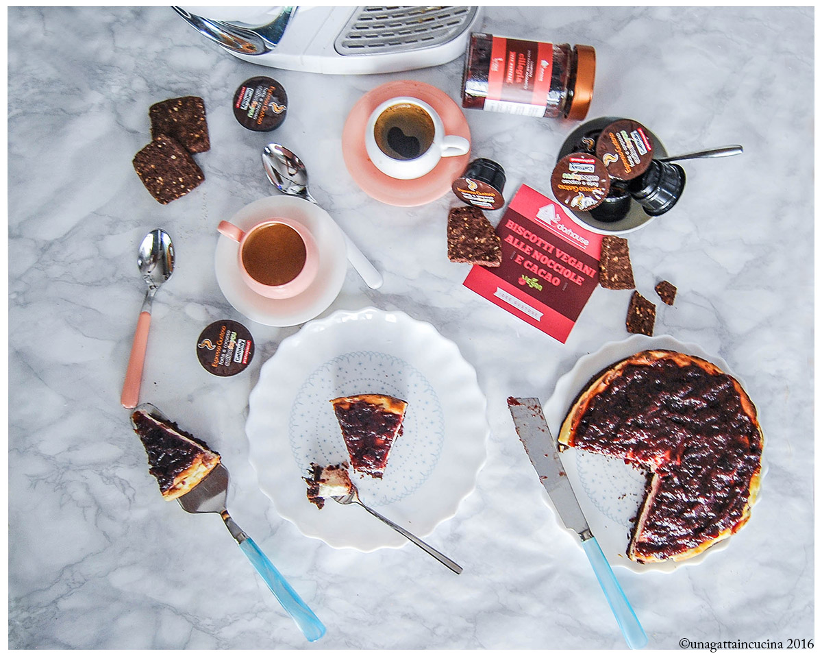 Speciale perché ha una base croccante, composta da dei buonissimi biscotti vegani alle nocciole e cacao, una delle idee gustose di Dorhouse e come topping la composta senza zucchero di ciliegie.