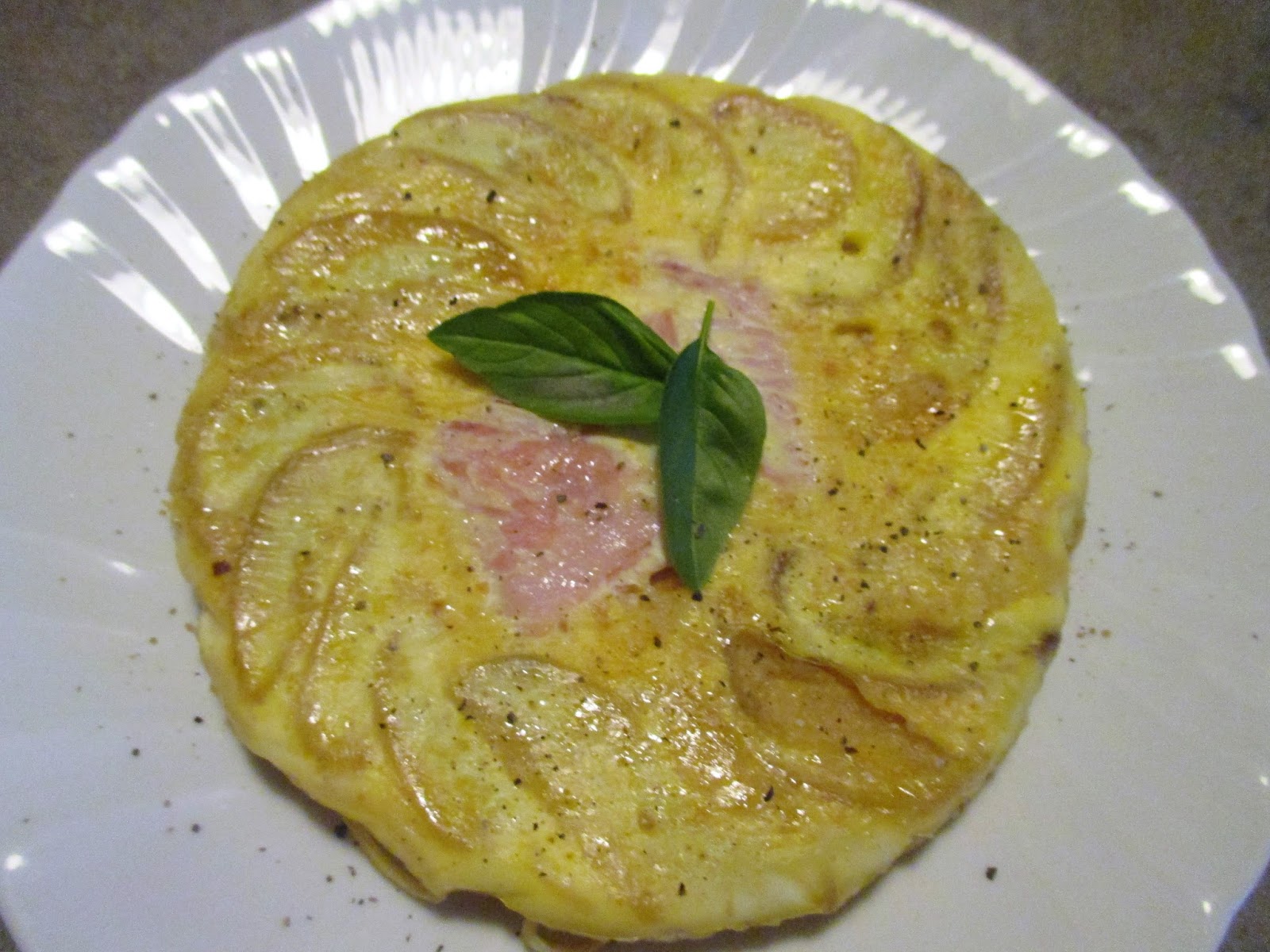 A flavorful omelet baked, inverted with the potatoes tasty and delicious cooked ham. A real treat.