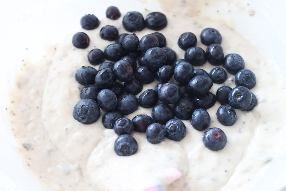 English – Finally add the blueberries, washed and rinsed. Gently mix.