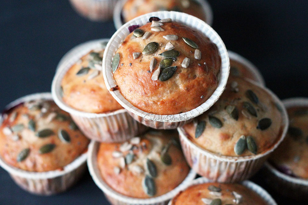 English – Muffins are perfect for breakfast. The recipe we are going to show you is also quite healthy: low sugar (there are bananas inside), low fat, eggless, fresh fruit and seeds. All you need for a sprint beginning of the day.