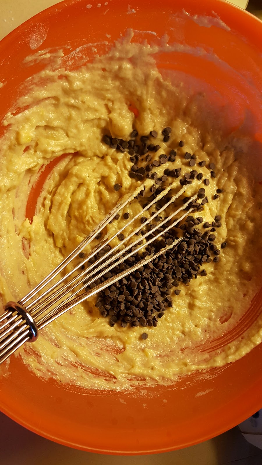 Aggiungere le banane, lo zenzero e il cioccolato, infine la farina il lievito e il bicarbonato setacciate con un colino.