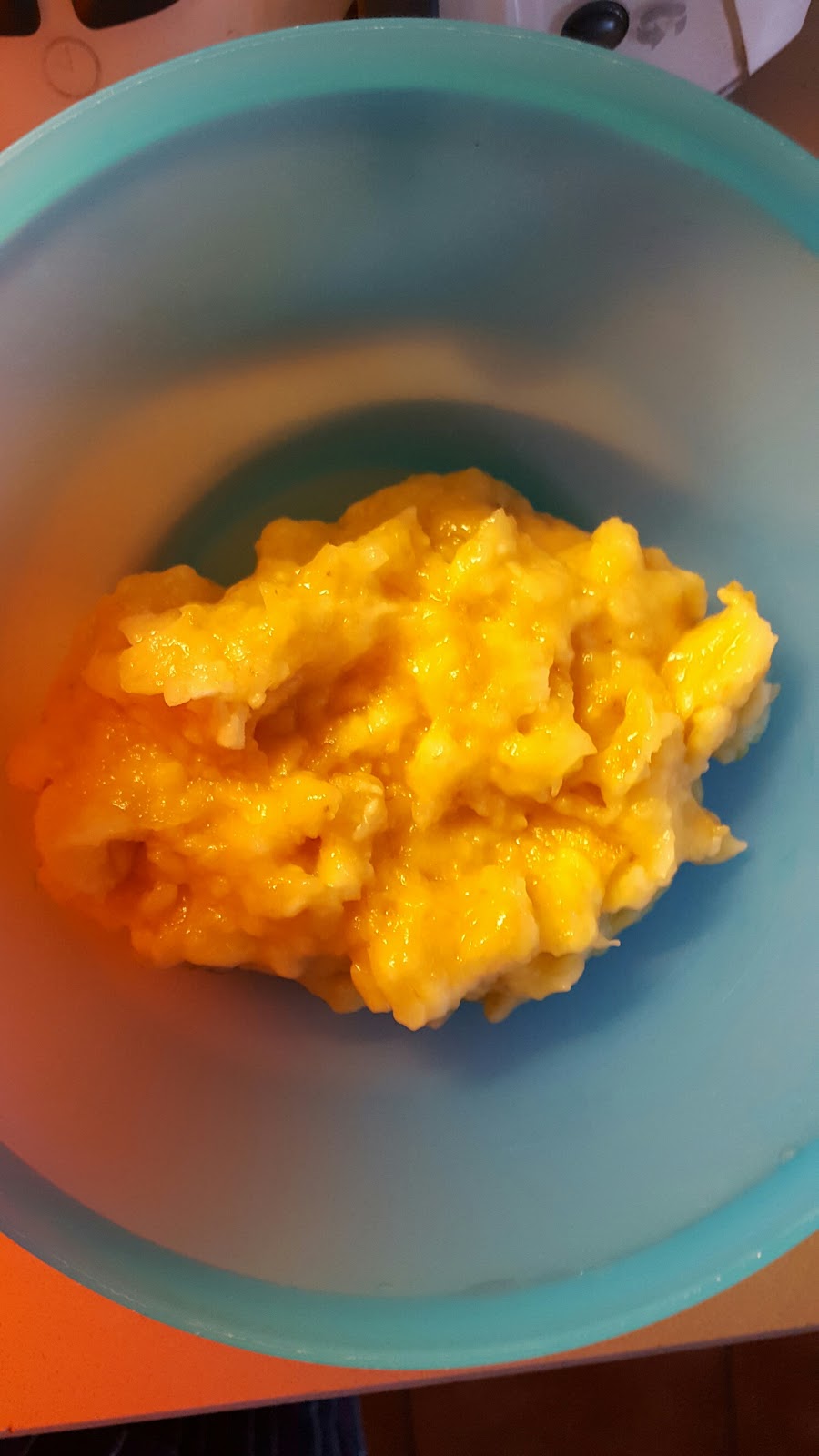 Pulire le banane e schiacciarle con una forchetta in una ciotola;