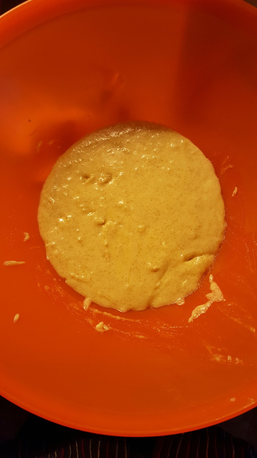 Mischiare tutto per bene, imburrare e infarinare uno stampo da plum cake e versarci dentro il composto
