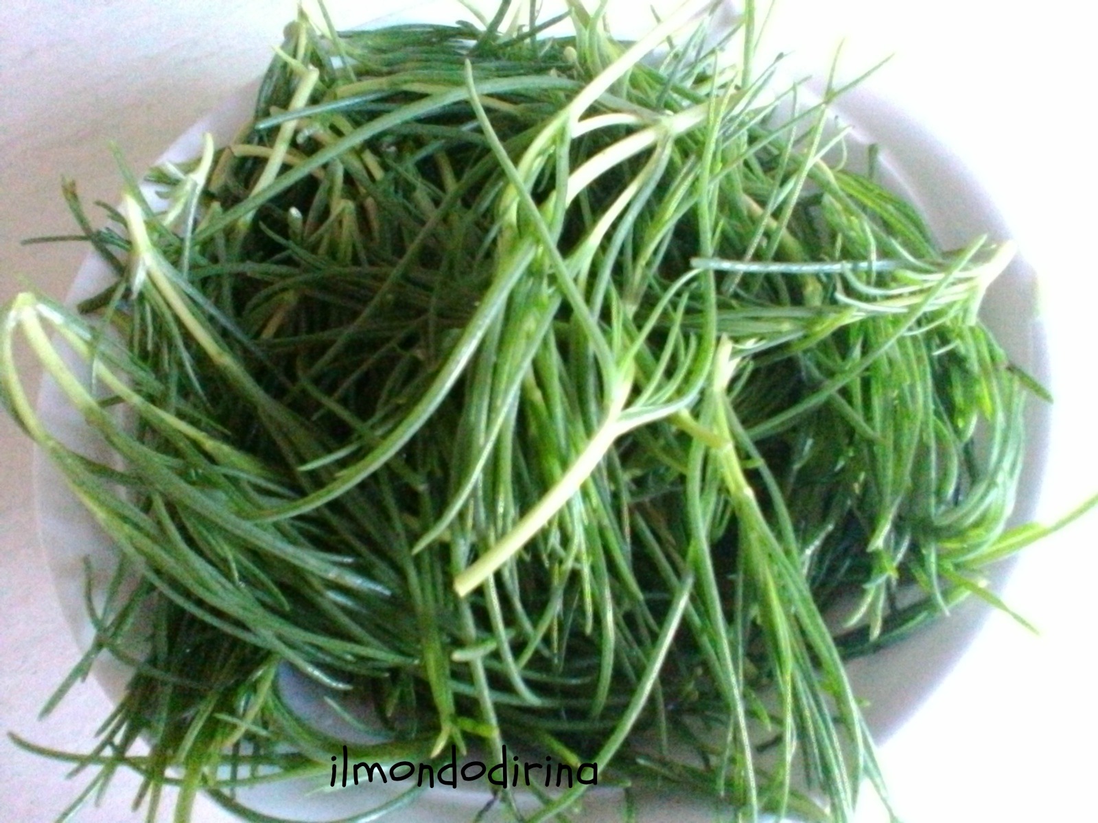 Barba di frate, agretti, barba del negus, soda e tanti altri nomi ancora per indicare questa verdura primaverile che per crescere necessita di un terreno ricco di sale. Per questo motivo la si trova facilmente lungo i bacini salini del Mediterraneo. Ho letto che il suo uso in cucina è piuttosto recente, mentre in passato veniva utilizzata come materia prima nella produzione del vetro.