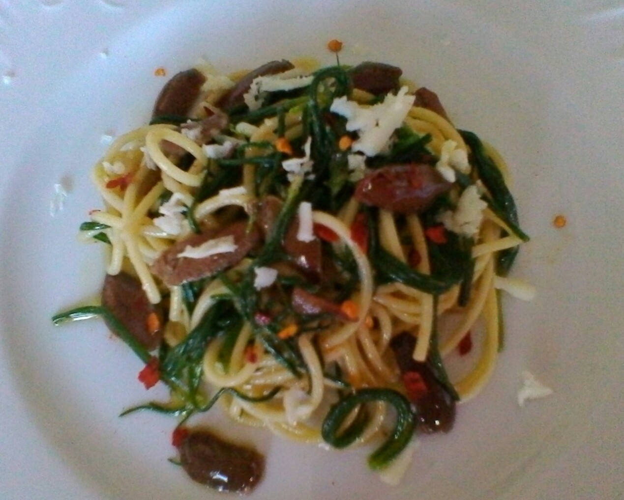 Mescolate bene per amalgamare tutti gli ingredienti e lasciate insaporire per qualche istante sul fuoco. Servite gli spaghetti con un filo di olio evo e scaglie di pecorino fresco.