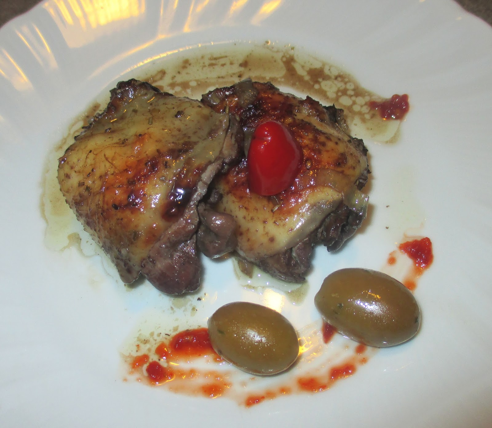 After this time, strain the marinade and keep it aside. Take now the carrots, onion and garlic that we are inside the bowl and let sauté in a saucepan that goes well for the oven. Fate then brown the chicken, add the filtered wine, green olives and practiced on the top of the light cuts thighs. Bake at 180 degrees for 50 minutes. After this time, with potholders to pull out of the oven pan (taking care not to burn yourself !!!) and sprinkle thighs with honey.