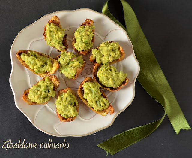 Per questa festa in accordo con mio figlio abbiamo deciso di fare qualcosa di diverso, invece della classica torta, ci siamo dati ad un aperitivo con queste barchette di patate, croccanti e molto sfiziose, riempite nel nostro caso con guacamole, ma è possibile sostituirlo con qualsiasi crema … quello che si preferisce.