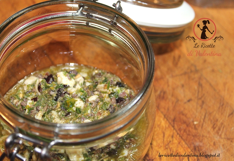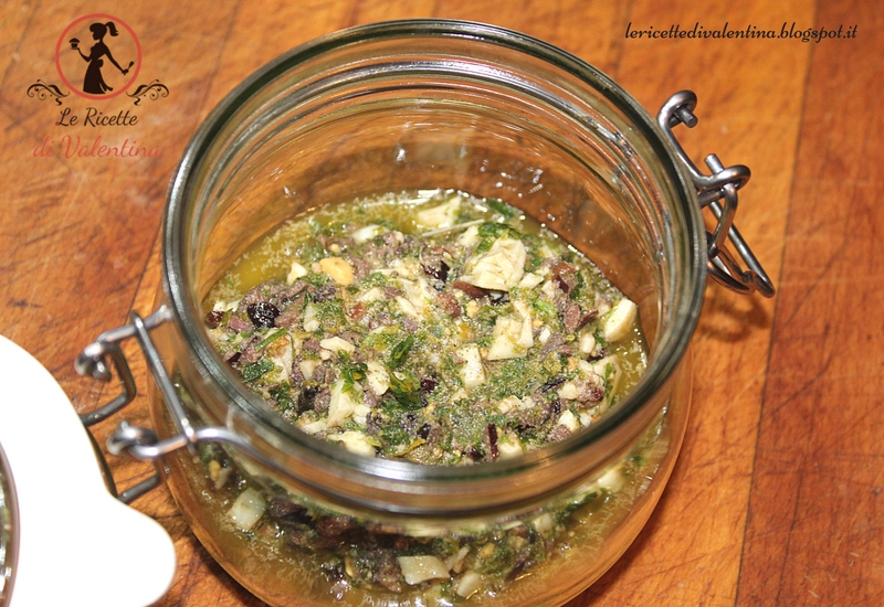 Ora amalgamate tutti gli ingredienti in un recipiente, unite a filo l’olio fino a creare una salsa omogenea, aggiustate di sale e pepe.