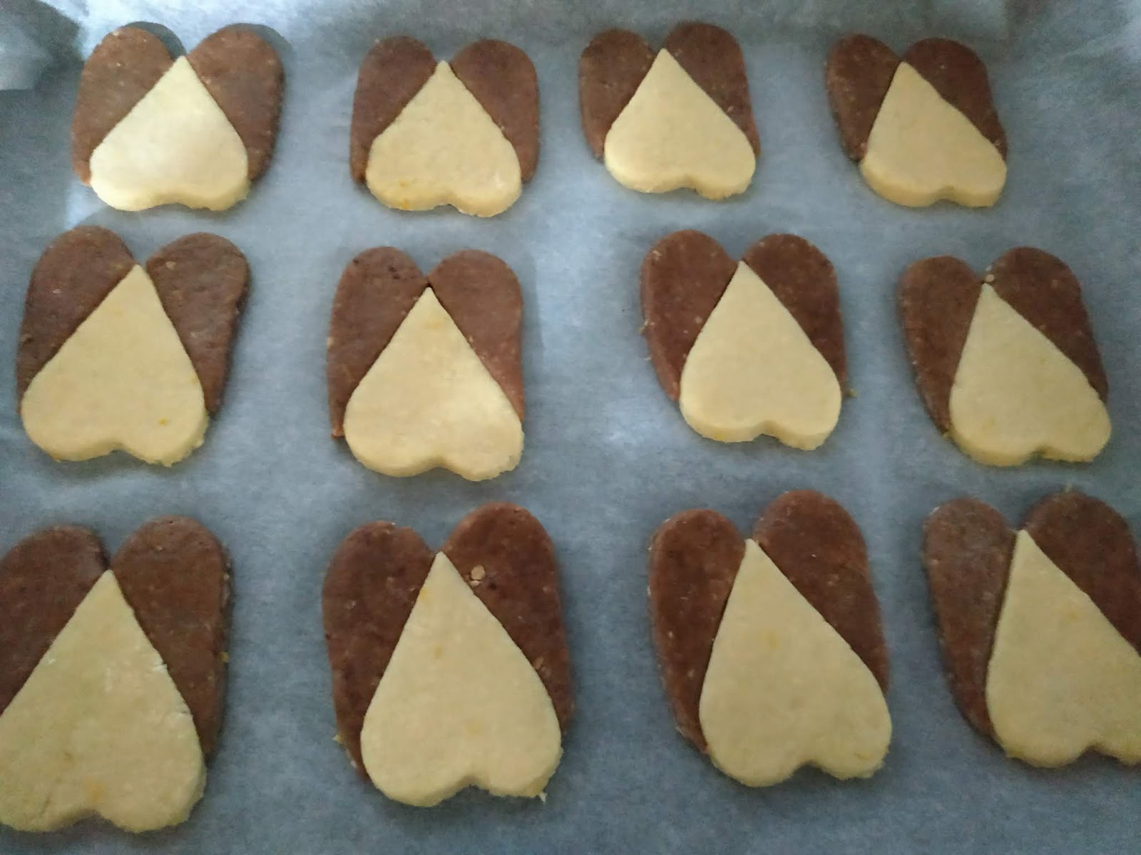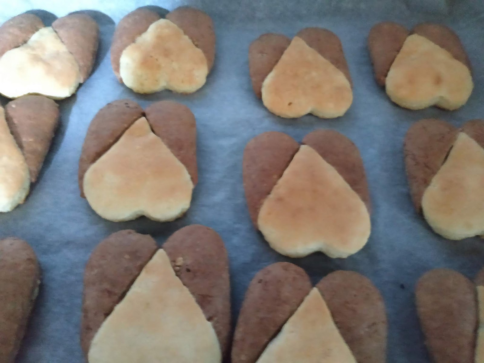 Posizioniamo sulla teglia i nostri cuori nel modo illustrato nella foto. Inforniamo a 180° per 15 minuti.