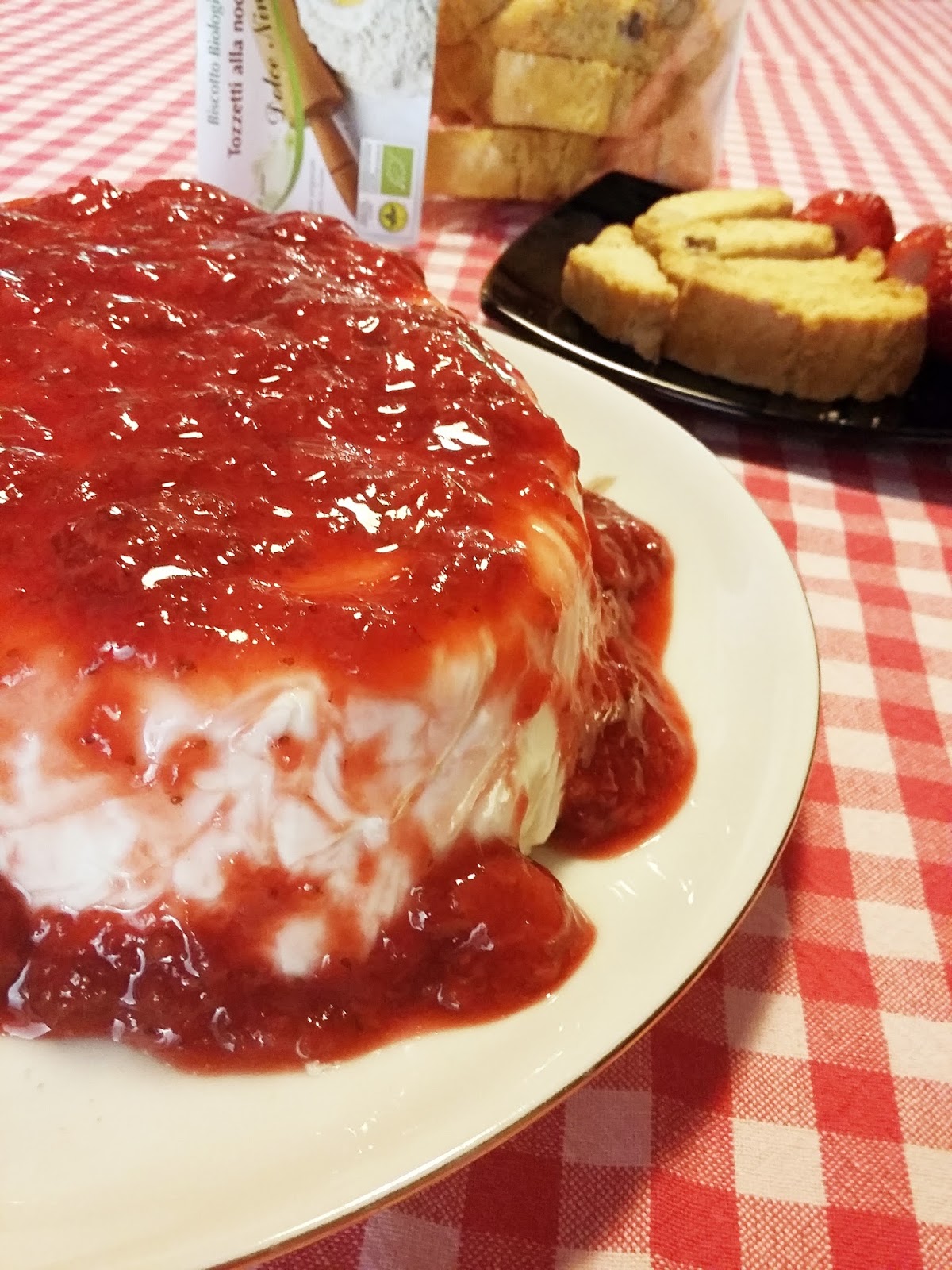 So che in Internet si trovano foto di bavaresi realizzate con stampi molto eleganti ed elaborati, dalle forme complesse. Volete un consiglio? Lasciate perdere. Per far reggere loro la forma viene usata una quantità spropositata di colla di pesce, mentre la bontà di una bavarese allo yogurt è proprio la sua morbidezza. Io ho usato una teglia ovale da forno, in ceramica, e come vedete il risultato è perfetto.