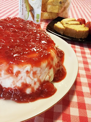Per chi non lo avesse mai assaggiato, lo yogurt di bufala ha un sapore più intenso del normale yogurt vaccino, ma ugualmente ottimo. Lo yogurt di bufala proposto da Cibo et Vino, in particolare, essendo privo di additivi e freschissimo è l’ideale per questo dolce. La bavarese, con questo yogurt e le mie modifiche alla ricetta classica, ha un gusto più deciso e una consistenza perfetta. La salsa di fragole e menta, anch’essa semplicissima, esalta i sapori al massimo senza coprirli, ed i tozzetti alla nocciola bio (trovate anche questi da Cibo et Vino) sono perfetti per un contrasto di consistenze!