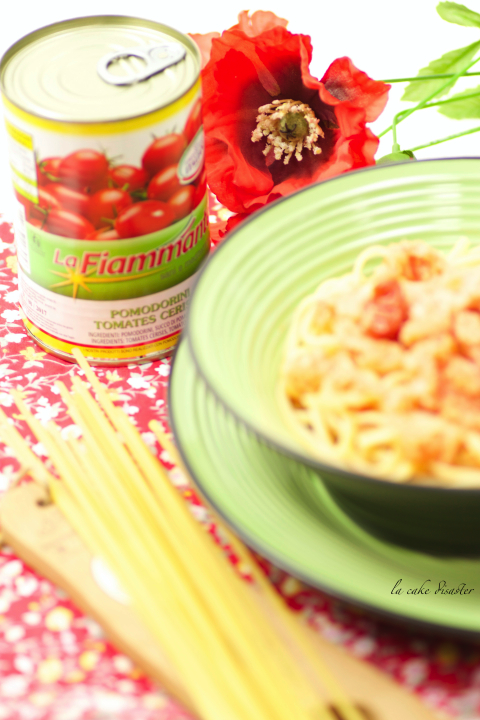 Se volete prepararvi un bel piatto di pasta con i prodotti genuini italiani posso solo consigliarvi i prodotti de “La Fiammante”… non mi stancherò mai di dire che il profumo del pomodoro fresco appena raccolto lo trovate in tutti i loro sughi e salse. Ho condito questo piatto di bavette con della pappa al pomodoro cucinata con una salsa di pomodorini freschissimi, leggera e saporita, non vi resta che provare e mi darete ragione.