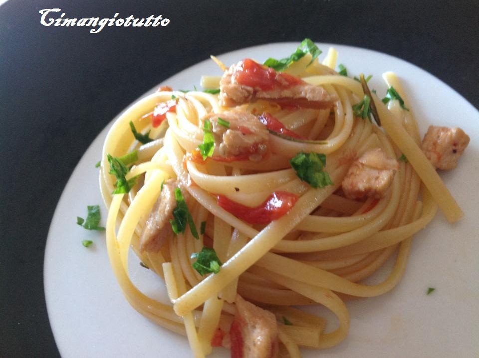 Saltare nel sugo le bavette cotte al dente e servirle con un trito di prezzemolo fresco.