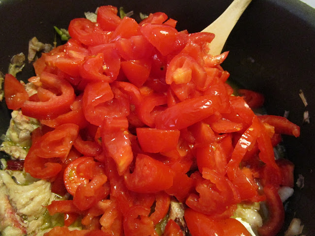 - aggiungere i pomodorini spezzettati e cuocere, a fuoco basso, per 5 minuti