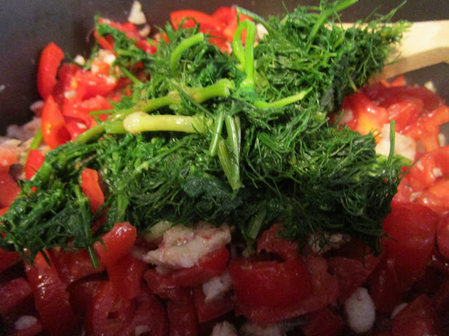 - aggiungere i finocchietti già lessati e tritati grossolanamente