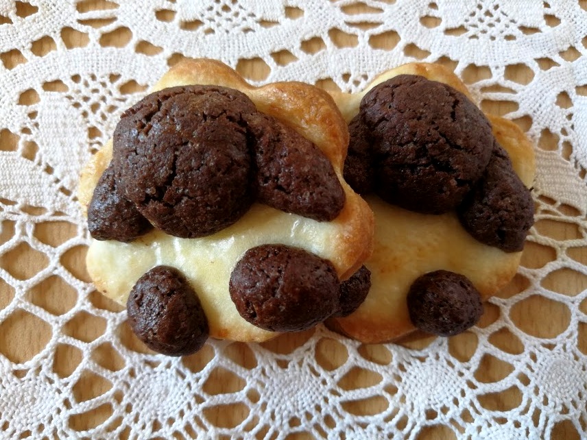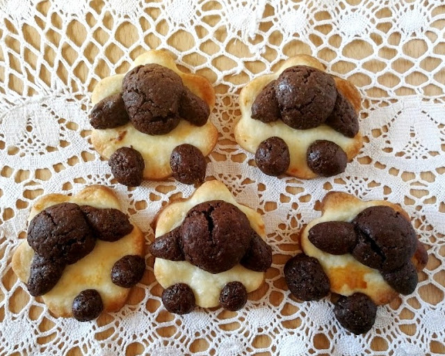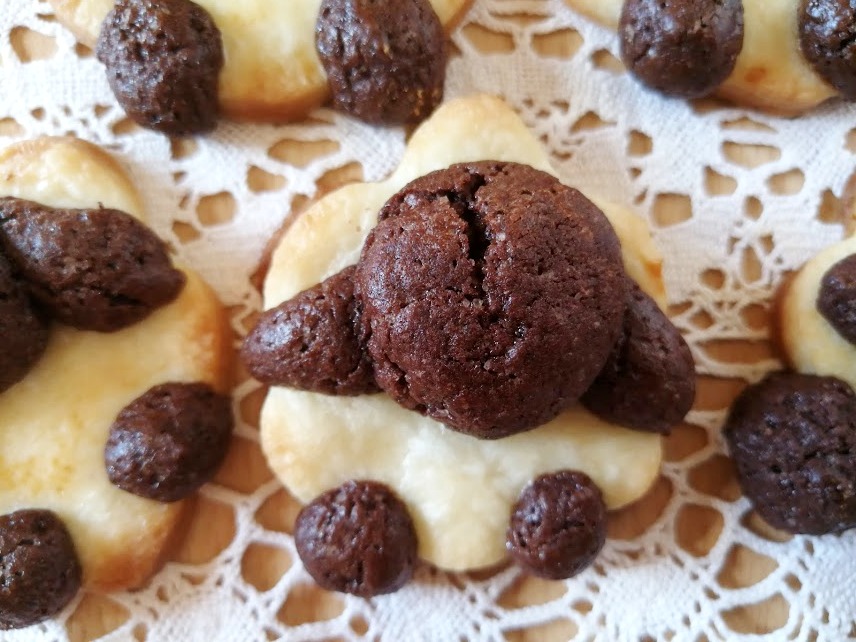 Con la frolla scura confezionare tante palline e sagomarle come appare in foto.